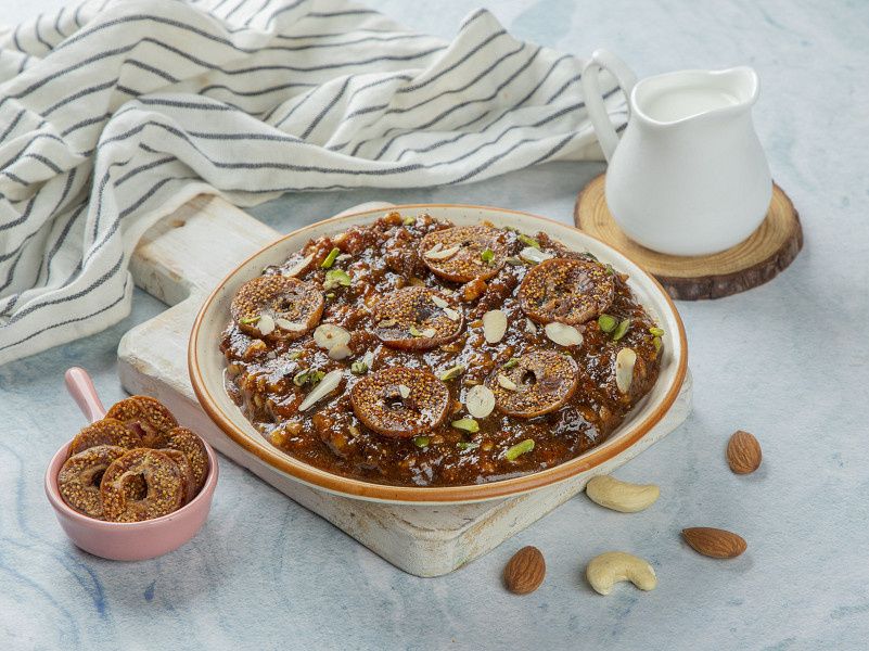 a healthy, nutritious and protein-rich sweet made with dried figs, mawa, nuts with milk and pure ghee