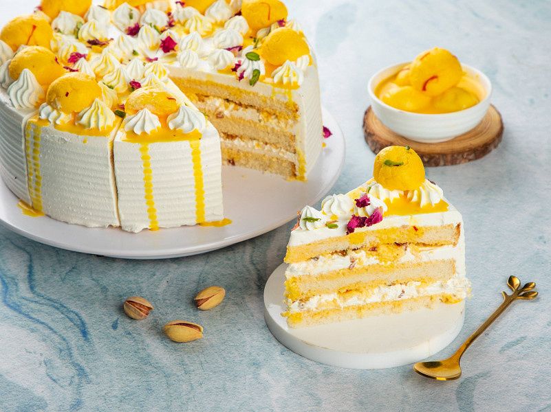 fusion of rasmalai sweet, juicy creams, layered with rasmalai in soft moist sponge